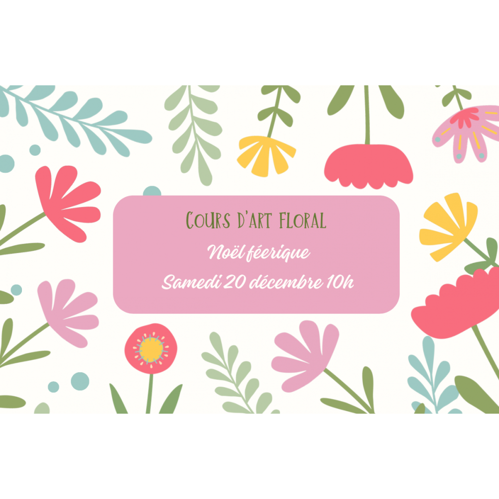 Inscription au cours d'art floral adulte "Noël féerique" du samedi 20 décembre 2025 à 10H. Venez réaliser votre centre de table de Noël lors d’un moment convivial.
